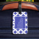 Blue White Geometric Pattern Custom Monogram Luggage Tag