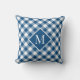 Blue White Gingham Check Pattern Chic Monogram Throw Pillow
