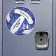 This blue and white volleyball team colors locker magnet with custom team and school mascot name features the realistic image of a volleyball that has a floral kaleidoscopic pattern blended with its blue panels - her name and team name are customizable, as is her jersey number - by katz_d_zynes | search ALL katzdzynes' blue & white volleyball team colors gifts >>>> https://www.zazzle.com/store/katz_d_zynes/products?cg=196840175015047850