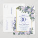 Blue White Gold Floral 30th Surprise Birthday Invitation Postcard