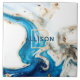 Beautiful abstract art with blue, white, and gold dust colors in elegant marble. A modern, contemporary painting print with a modern monogram font. Customize the fonts and font colors to your liking.