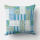 Blue, White, Green Morning Glory Faux Patchwork Throw Pillow