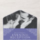 Blue purple on white hand-drawn growing leaf botanical art add your own couples photo evening wedding reception all-in-one invitation. Personalize this detachable reply wedding invitation with your own wedding event details, a photo of the happy couple, and add your RSVP with guest meal options to your detachable replies and a QR code for replies or to direct your guests to further information or gift registry . Simple leaf design corners and circling your own monogram initials on the outside flap. Other colors and matching wedding items available. © Original leaf hand drawing and design by artist and designer Sarah Trett for www.mylittleedenweddings.com on Zazzle.
