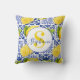 Blue White Lemon Tile Pattern Citrus Monogram Name Throw Pillow