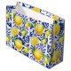 Blue White Lemon Tile Pattern Mediterranean Citrus Large Gift Bag