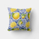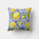 Blue White Lemon Tile Pattern Mediterranean Citrus Throw Pillow