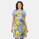 Blue White Lemon Tile Pattern Monogram Name Citrus Apron