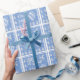 Introducing our Blue White Grey "Let it Snow" Wrapping Paper: A timeless and elegant choice for your customers this holiday season. Featuring a white snowflake on blue background adorned with white and gray stripes, this customizable wrapping paper exudes wintery elegance. With white and grey accents, including charming Christmas trees and accent lines, it captures the spirit of the season. Personalize it with your store logo and a heartfelt message. Complete with a "Let it Snow" greeting in a retro font, this wrapping paper is sure to impress and add a touch of nostalgia to your Christmas gifts. Make every package truly special with our white and blue "Let it Snow" Wrapping Paper.