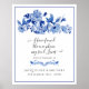 Blue White Love Birds China Floral Welcome Wedding Poster