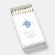 Chic with youthful elegance. This dusty blue and white wedding matchbox exudes a fresh, modern and youthful tone. The design features a lovely elegant floral couple monogram, thank you text, couple names and date against a white background. Variations of this design is available in the full collection.