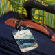 Beautiful artistic custom name luggage tags with a cute winter mountain snowy forest.