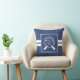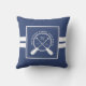 Blue lake house throw pillow with a nautical monogram with paddles and a rope border. Add your family name, initial, and the year established in white fonts.