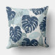 Blue White Palm Leaves Throw Pillow