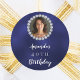 For an elegant 40th (or any age) birthday. A blue uneven colored background. Personalize and add a name and age. Add a photo into the faux diamond frame. White text.