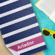 Blue White Pink Striped Monogram Beach Towel