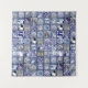 A collection of blue and white design bunny rabbit tile decorate this tapestry in an overall pattern with a dark blue background. The tile include antique and vintage designs as well as modern rabbit tiles by this artist. Represented are tile by William Morris, De Morgan, Arts and Crafts Movement, Asian / chinoiserie, Mediterranean / Italian and old Dutch Delftware. There are various blue hues and some tile show creamy tan undertones from age and their types of clay. Some of the size options for these tapestries will show variations in the print pattern. Original design and certain tiles by Tuzi Williams.