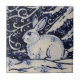 My original, copyrighted tile design features a rabbit and stylized wintry background in crisp cobalt blue and white.