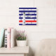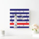 Blue white red nautical stripes lighthouse square wall clock
