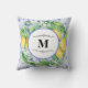 Blue White Rustic Lemon Greenery Wreath Monogram Throw Pillow