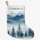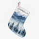 Blue White Snow Christmas Pine Trees Small Christmas Stocking