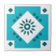 This pretty southwest motif tile would make a nice border in a kitchen or sun room. The aztec style cross and sun symbol tile is in tones of dark blue, light blue, and white. Not overly intricate or busy, but just right for a splash of color.