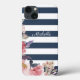 The sailor blue & white stripe design with flowers make a beautiful cell phone cover. Add your name to personalize it and make it one of a kind. Available to fit different models