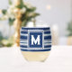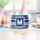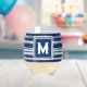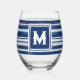 Fresh and bright shades of blue and white on this striped design with a monogram box for a single initial.