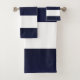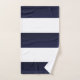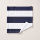 This bathroom towel set features blue white stripes designed by deluxephotos.