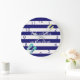 Blue white stripes beach flip-flops large clock