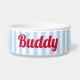 Blue White Stripes Dog Puppy Cat Name Cute Food Bowl