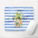 Blue White Stripes Tropical Floral Pineapple Mouse Pad