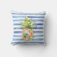 Blue White Stripes Tropical Floral Pineapple Throw Pillow
