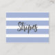Blue White Summer Coastal Stripe Pattern Business Card designed by Nisha Prabhu. Fully Customizable. Personalize with your details. The Blue White Summer Coastal Stripe Pattern Business Card features a clean and professional design with a touch of summertime charm. The front of the card showcases a vibrant blue and white striped pattern reminiscent of a sunny day at the beach. The stripes can help grab attention and make a lasting impression on potential clients or contacts. They also convey a sense of freshness, energy, and reliability. The backside of the card provides ample space for important contact information. The Blue White Summer Coastal Stripe Pattern Business Card is perfect for professionals in a wide range of industries, including travel, hospitality, real estate, fashion, and event planning. It exudes a sense of professionalism and creativity while also capturing the essence of summer and a beachside getaway. Whether you're attending a business meeting or networking event, this business card is sure to make a memorable statement.