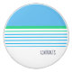 Modern, coastal style, blue, white and teal green color, striped ceramic knob, featuring custom text, designed by TheLakeIsland.