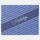 This cute basketball themed fleece blanket for girls features the text phrase, "The basketball court is my happy place" in a casual handwritten-style font along with heart shapes in white patterned diagonally on a medium blue background - personalize with her name on a chunky full width angled darker blue color strip - background, color strip, and personalized text color can be changed to ANY color--choose a background color that contrasts with the white text pattern - katz_d_zynes