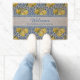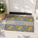 Beautiful classic Mediterranean style pattern with watercolor lemons and ornate decorative blue and white tiles. Personalize the welcome mat with your name.
