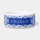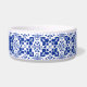 Blue White Tile Pattern Elegant Personalized Pet Bowl