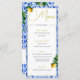 Elevate your special Wedding day with this Italian inspired elegant Italian blue tile and gold color botanical lemons Wedding Menu.