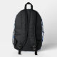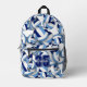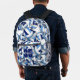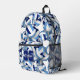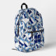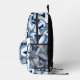 This fun volleyball backpack features a random pattern of varied size light blue, dark blue & white volleyballs turned every which way on a white background - customize with the athlete's name & jersey number - by katz_d_zynes