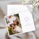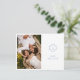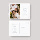 Chic with youthful elegance. This dusty blue and white flat wedding save the date postcard exudes a fresh, modern and youthful tone. The front of the card includes a contemporary set of fonts in dusty blue and elegant floral couple monogram and couple photo, against a crisp white background. Details are repeated at the back with optional lined area and additional text.