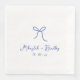 Blue & White Whimsical Hand Drawn Bow Wedding Paper Dinner Napkins. Personalize with your names and wedding date in blue handwritten style font.