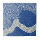 Blue White Woodcut Wave Abstract Pattern Ceramic Tile