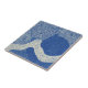 Ceramic Tile - Textured blue and white abstract pattern with woodcut-style lines, concentric circles, and flowing wave forms. Ideal for modern art lovers, minimalists, and those drawn to Japanese-inspired designs.