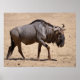 Blue wildebeest (Connochaetes taurinus) walking on sandy ground seen from profile