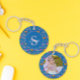 The front showcases a clean white frame for your custom monogram and name, while the back is fully customizable—simply upload your favorite photo to create a truly personal keepsake. Whether it's a family portrait or a snapshot of a beloved pet, this durable keychain makes a stunning gift for gardeners, bee lovers, or anyone who appreciates a modern botanical aesthetic.