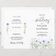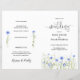 A blue floral wildflower meadow features on this foldable wedding program - our own unique watercolor illustration. Designed to be printed on both sides, the cover shows the venue whilst the inside can be edited with the order of service and wedding party. Part of our wedding collection The Blue Tangled Meadow,