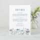 Share important information with your guests using our Blue Wildflowers Wedding Details Enclosure Card. This elegant card features a soft watercolor design of French blue wildflowers, including hydrangeas and strawflowers, arranged in a graceful, nature-inspired layout. Perfect for including details such as accommodations, directions, or your wedding website, this enclosure card complements rustic, garden, or boho-chic wedding themes. Fully customizable, it adds a cohesive and refined touch to your wedding invitation suite while ensuring your guests have all the information they need.