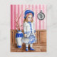 A portrait of a beautiful Bebe Bru doll in a victorian dress with a Blue Willow motif.