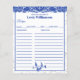 Personalize these recipe cards with the name of a special cook's kitchen! These cards are decorated in traditional blue and white Blue Willow china motifs of a decorative top border and flying phoenix birds, all my hand painted interpretations. The border resembles a crackled pottery glaze. The cards are lined front and back to make it easy to write your recipe. It's easy to customize these with a name, using the text template and edit menu.This popular china pattern is beloved and timeless. Whimsical, unique design by Tuzi Williams.