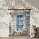 Blue Window Stone Wall Cottage Vines Hanging Tapestry